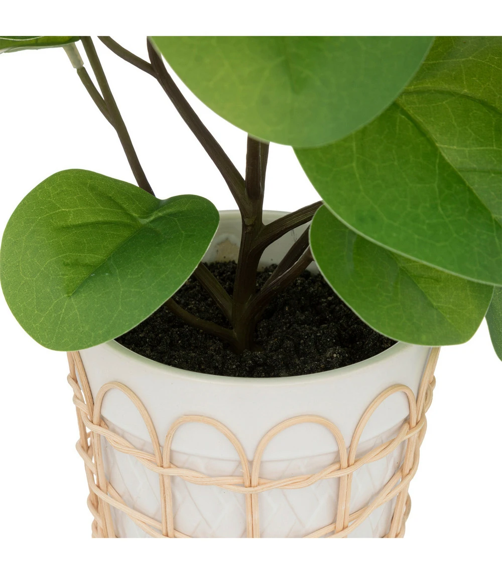 Plante artificielle dans pot en céramique et rotin h 34 cm (-)