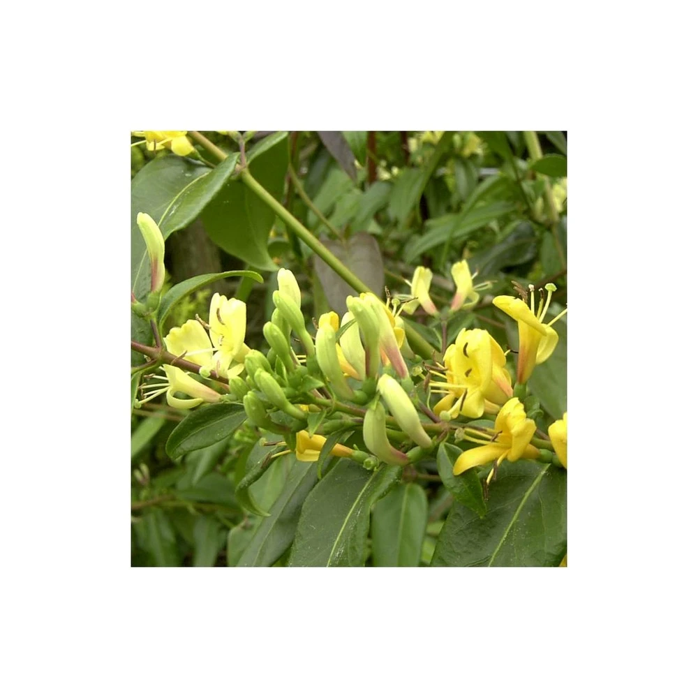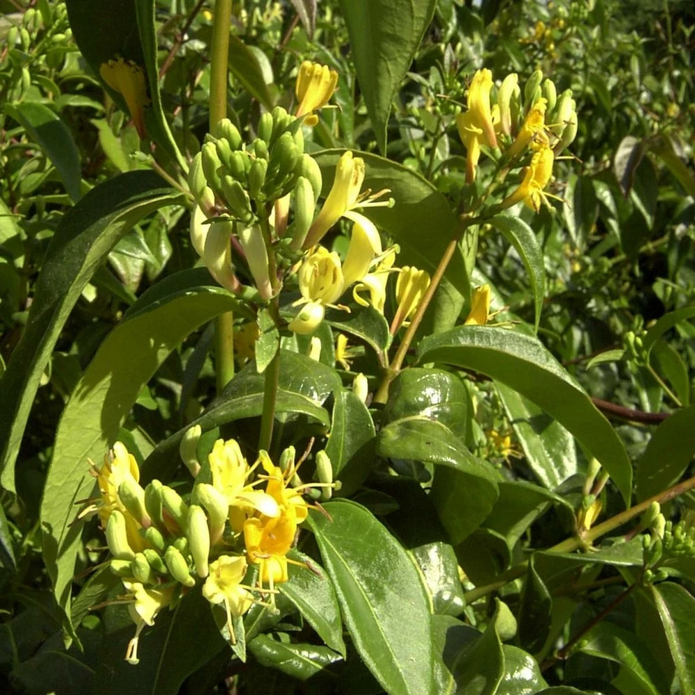 feuillage persistant bronze pourpre sur les jeunes pousses, fleurs jaunes.