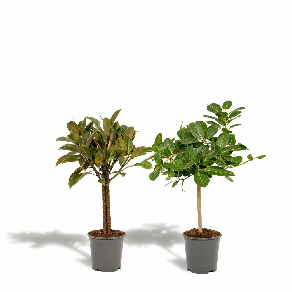 Ce duo de plantes d’intérieur crée une ambiance verte dans votre maison. Le ficus elastica melany (h90cm, ø21cm) et ficus benghalensis audrey (h90cm, ø21cm) sont les ingrédients idéaux pour un cocktail tropical. Ces ficus aiment être arrosés régulièrement et un sol humide. Un arrosage chaque semaine est suffisant. Placez vos plantes dans un endroit lumineux, mais essayez d’éviter la lumière directe du soleil. Nos plantes d’intérieur sont soigneusement sélectionnées par nos experts et expédiées directement de notre pépinière. Nos plantes sont cultivées aussi organiquement que possible et grandissent dans une serre qui fonctionne avec l’énergie solaire et la chaleur géothermique.
